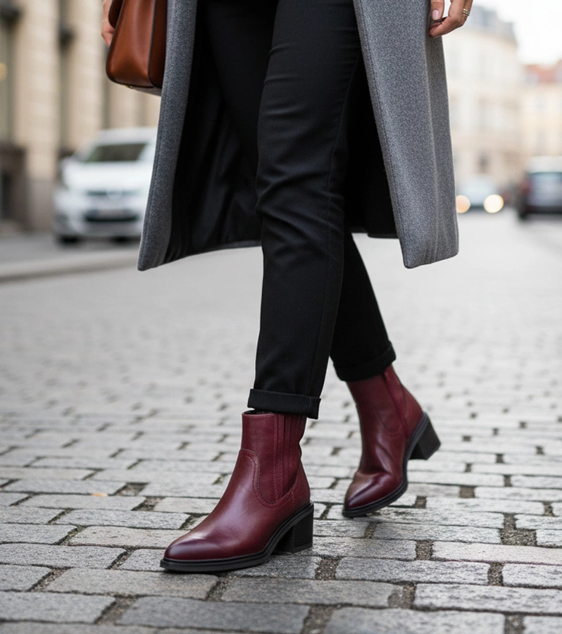 Bordové členkové čižmy na podpätku s elastickým vsadením Sesie