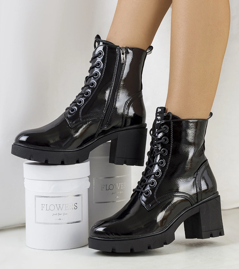 Čierne lakované lodičky s ihličkovým podpätkom Peet