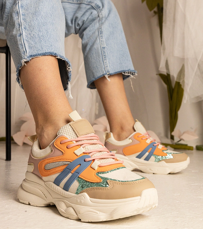 Oranžové dámske športové tenisky s trblietkami Maleda