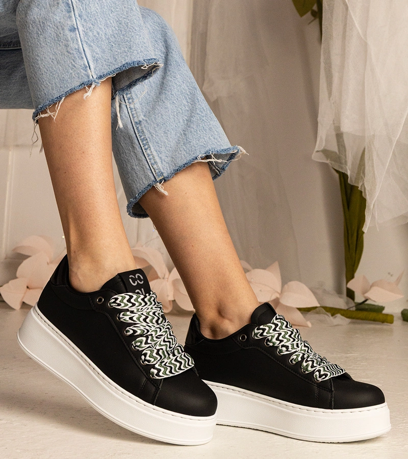 Čierne tenisky s priedušným vzorom na masívnej podrážke Lusinda