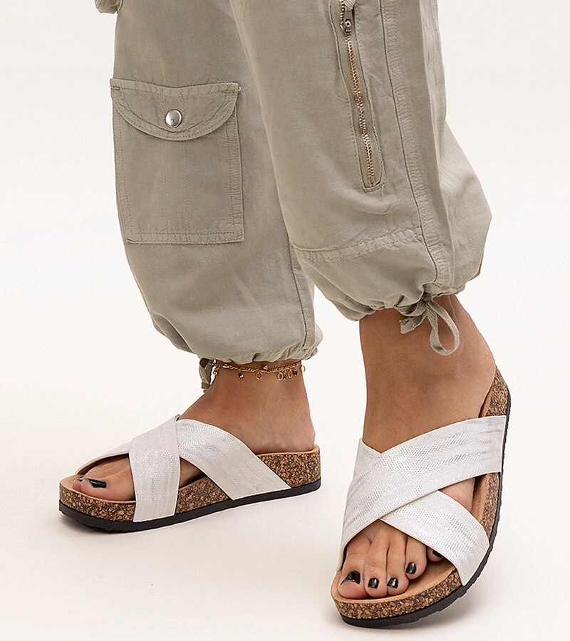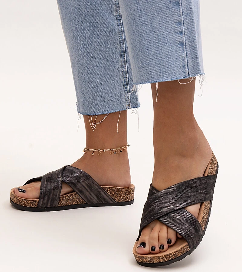 Šľapky na nízkom podpätku s dekoratívnou sponkou Luara