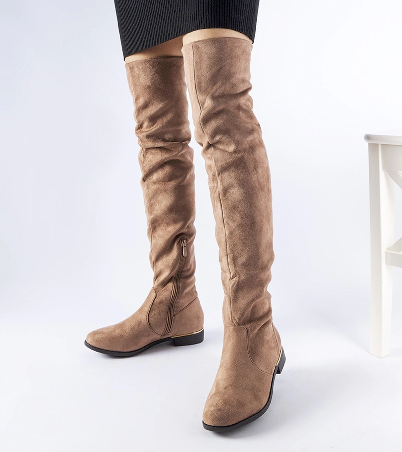 Čokoládové čižmy na podpätku z ekologického semišu Neve