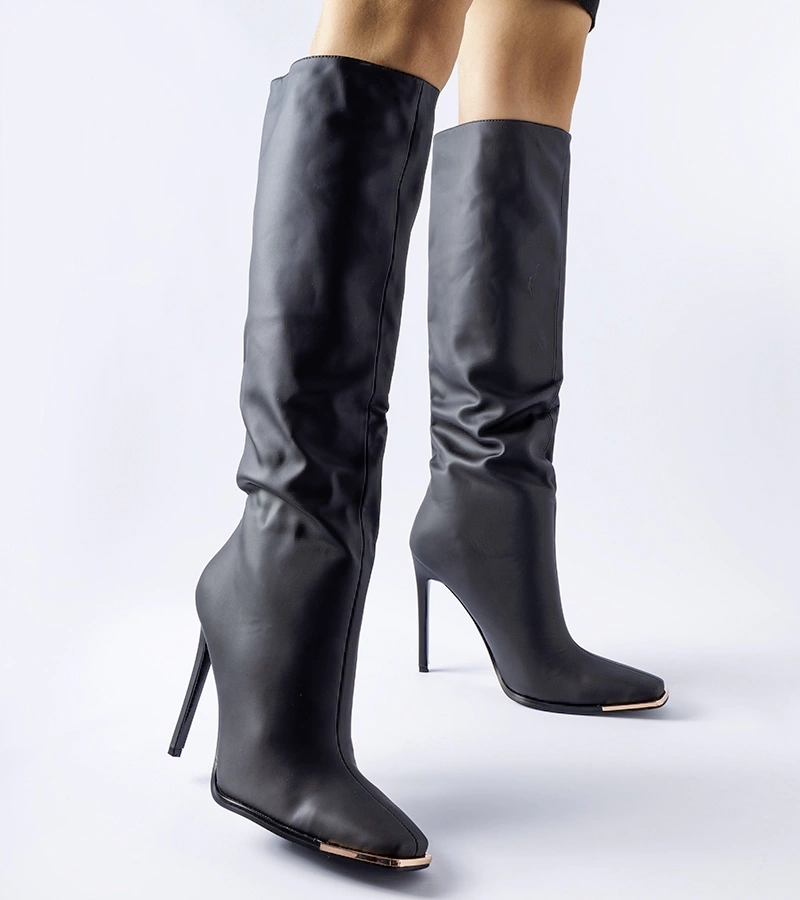 Čierne čipkované cowboy čižmy na podpätku Raiano Y-075 BLACK