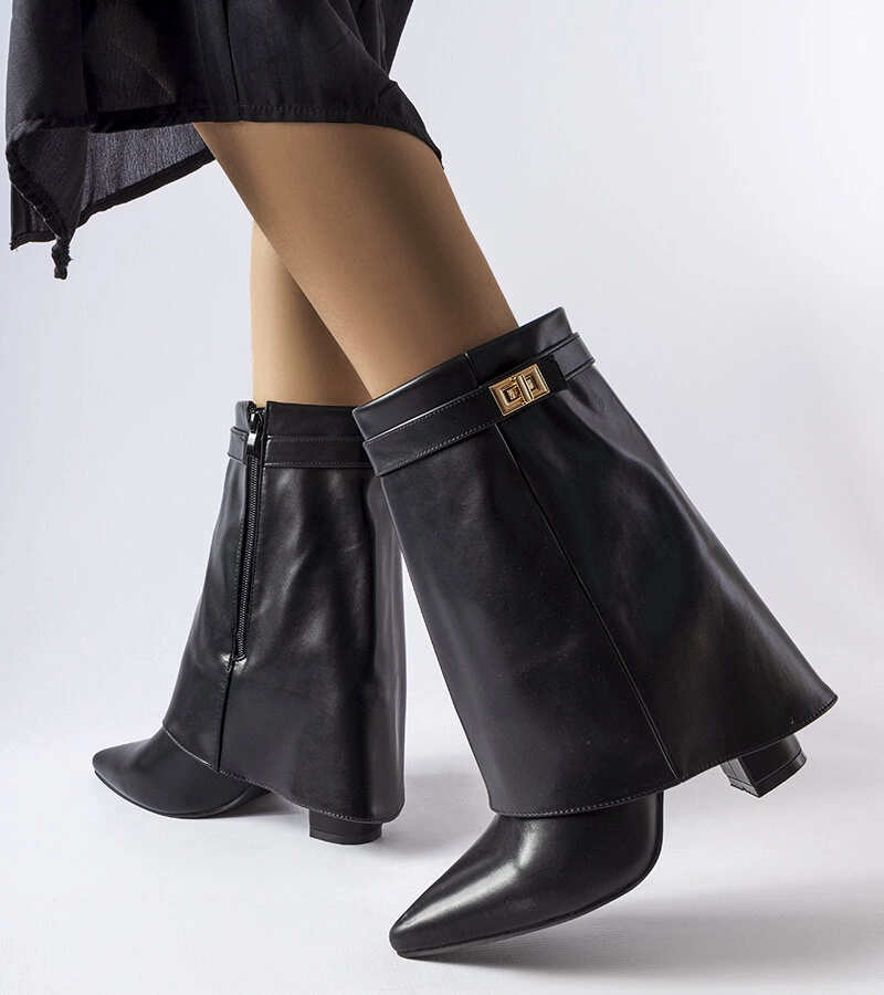 Čierne čižmy s otočeným zvrškom od značky Aya