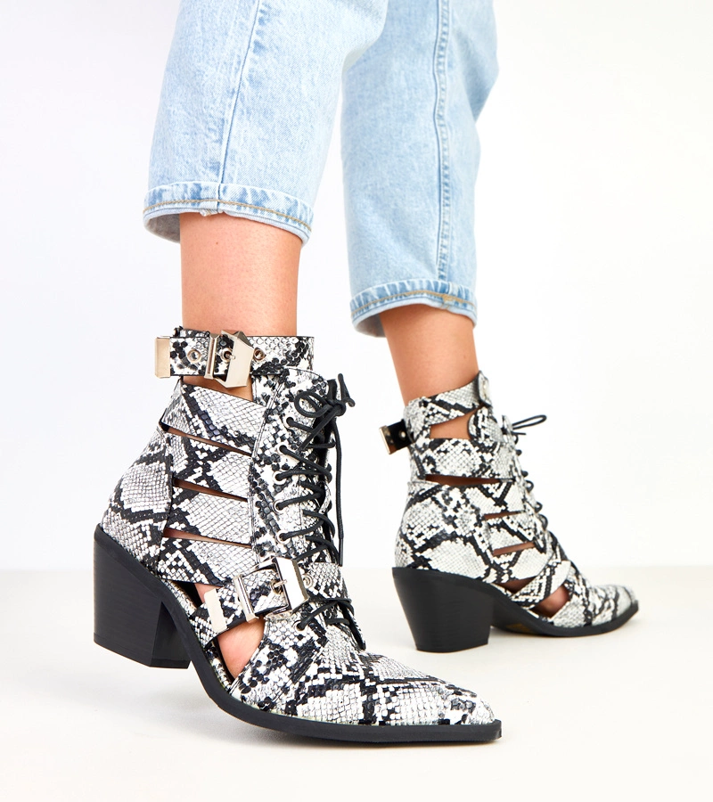 Čierno-biele členkové topánky na podpätku šnurovacie s výrezmi Verica