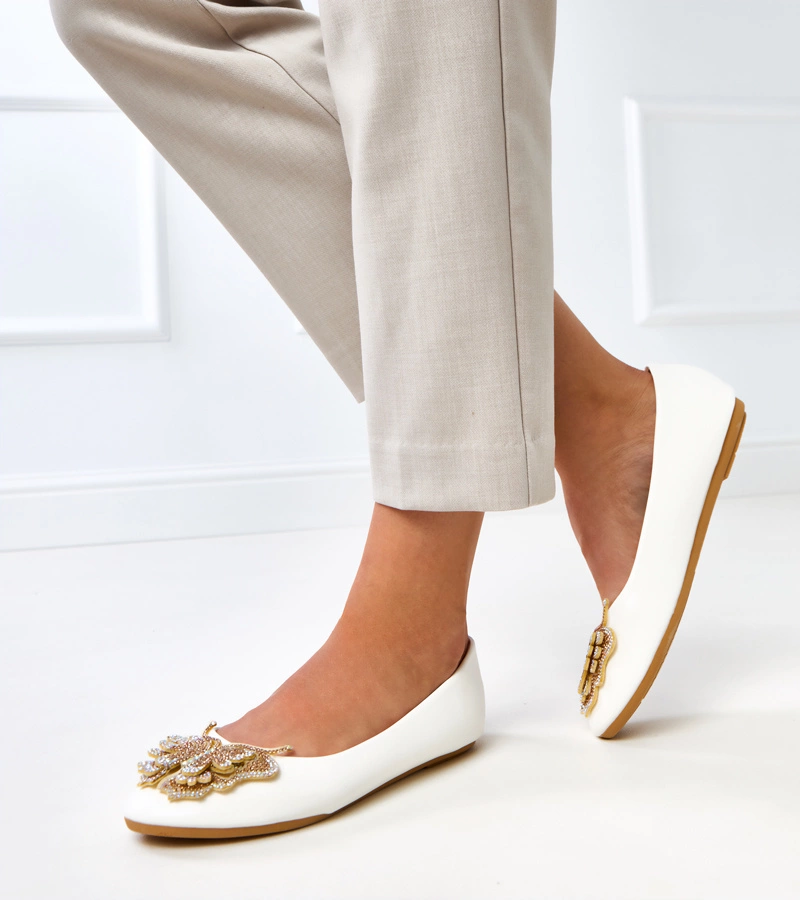 Biele tenisky na platforme zdobené motýlikom Aviara