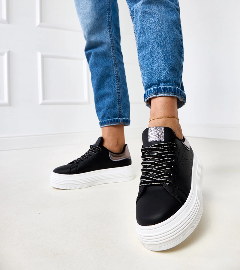 Čierne tenisky na platforme so striebornou vsadkou Isaksson
