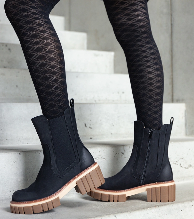 Čierne čižmy na podpätku s elastickými vsadkami z eko-velúru Nadisa