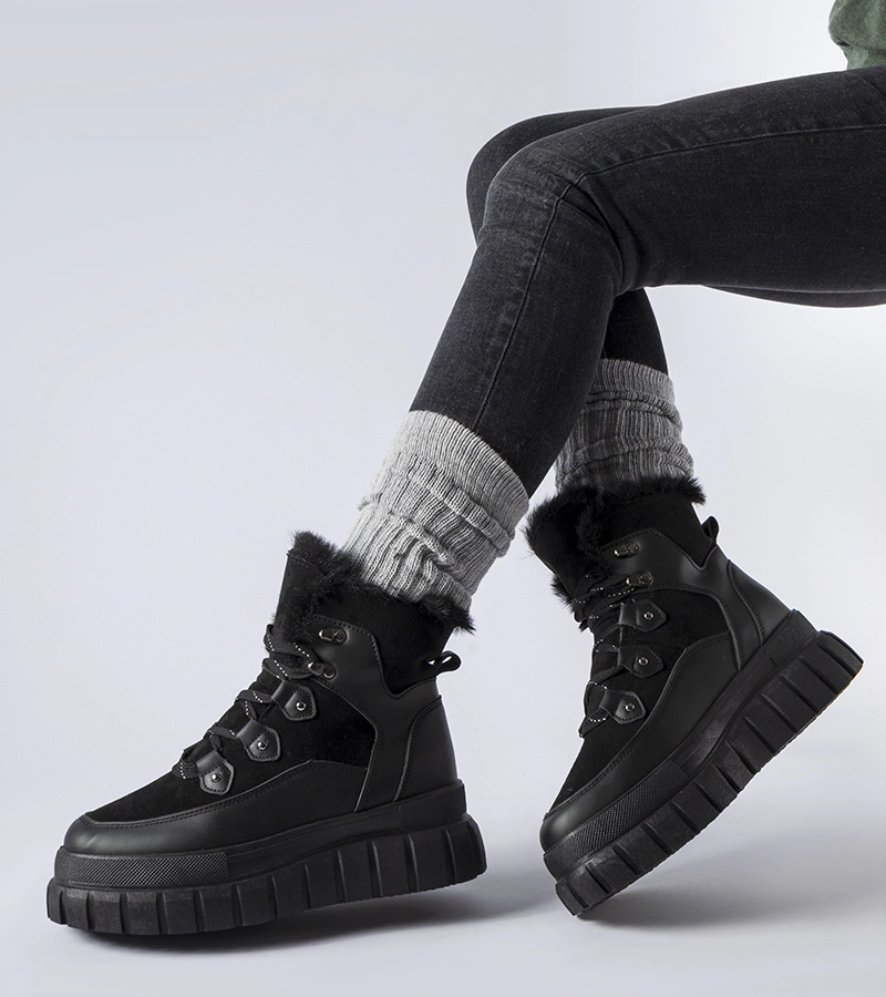 Čierne lakované ľahko zateplené členkové topánky Cunha