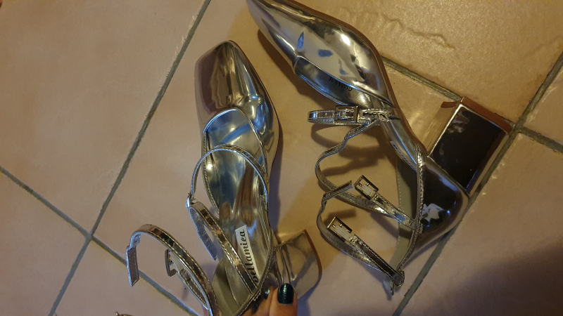 Recenzie o Strieborné lakované lodičky na podpätku s prackami Kamola