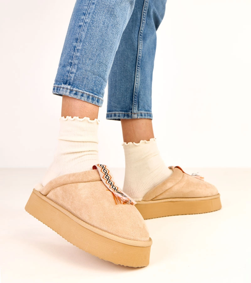 Čierne papuče so svetlou kožušinou Helison