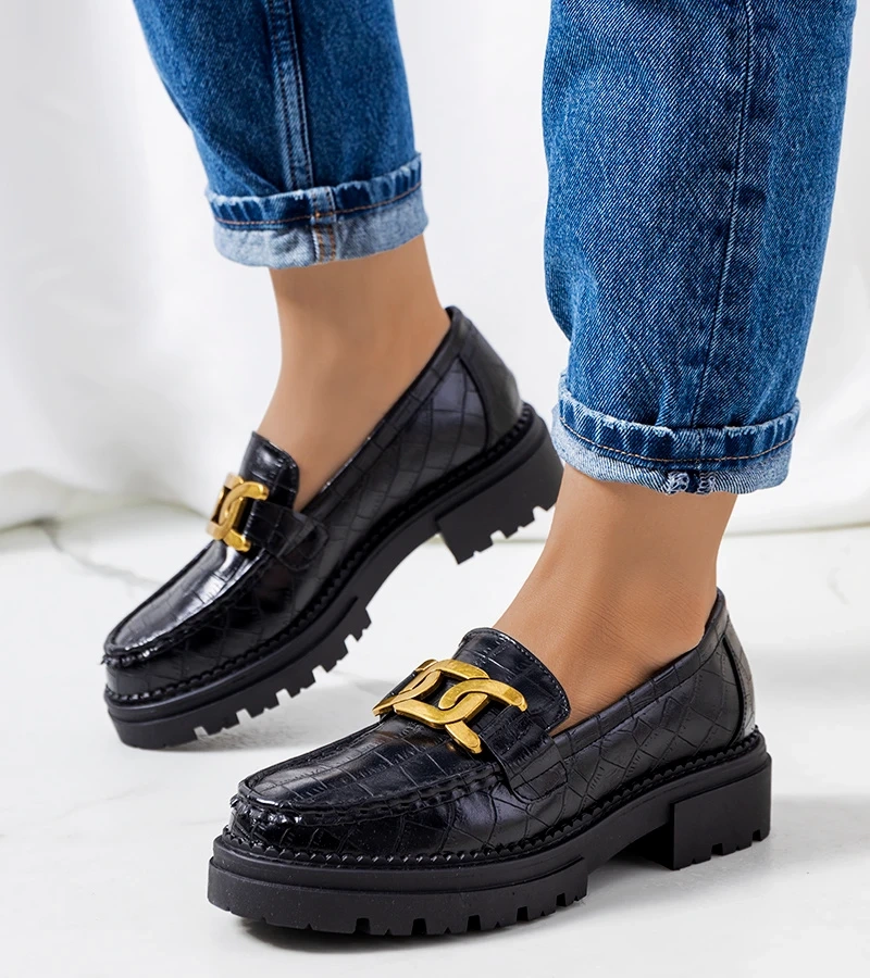 Čierne mokasíny s traktorovou podrážkou Gosens