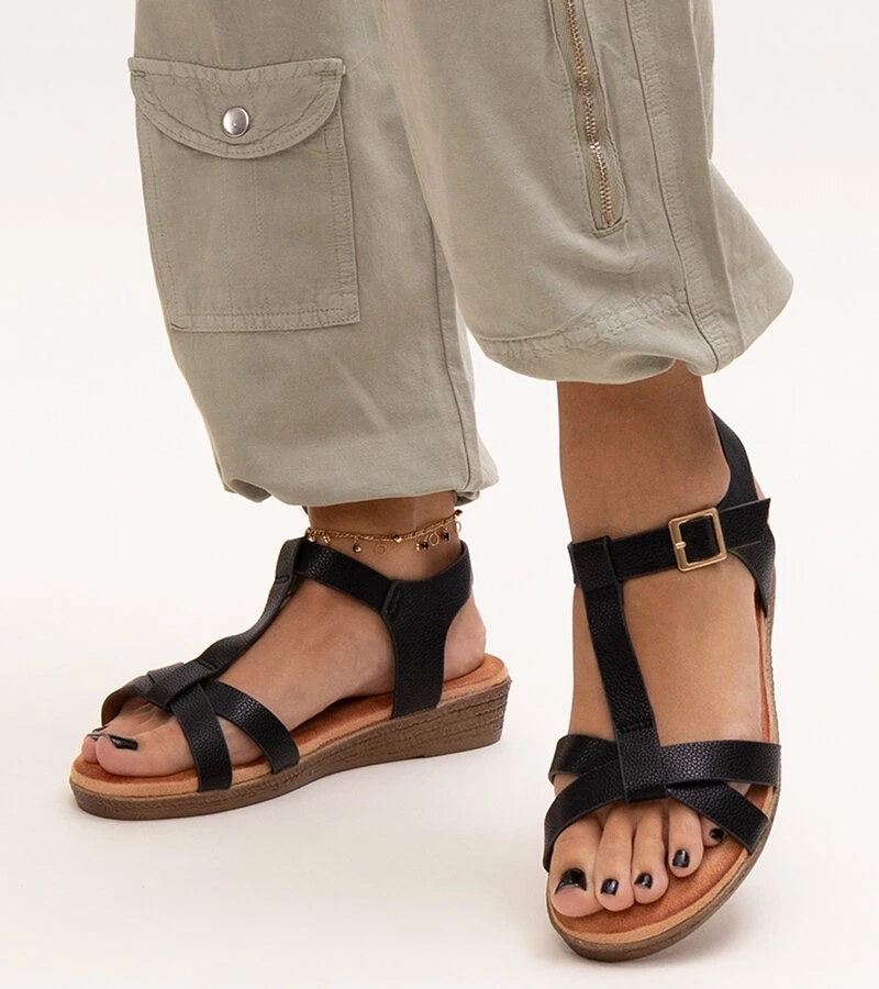 Čierne sandále na nízkom podpätku zdobené zirkónmi Ulma