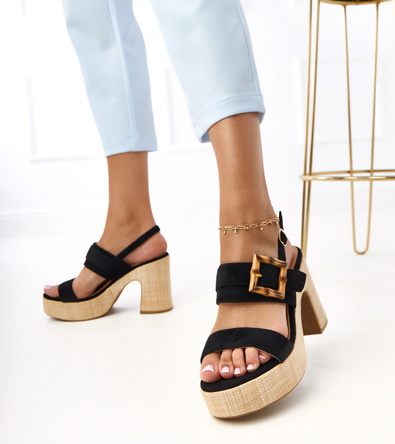 Čierne sandále na podpätku zdobené kvetom Marisol