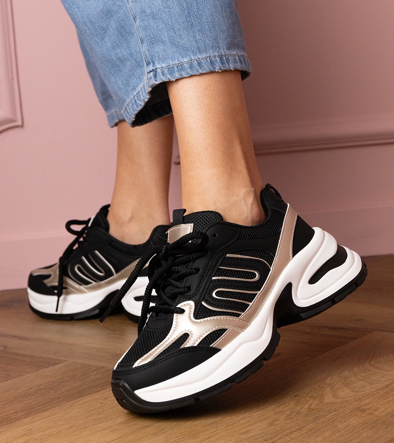 Čierno-biele dámske tenisky na vysokej podrážke Selina
