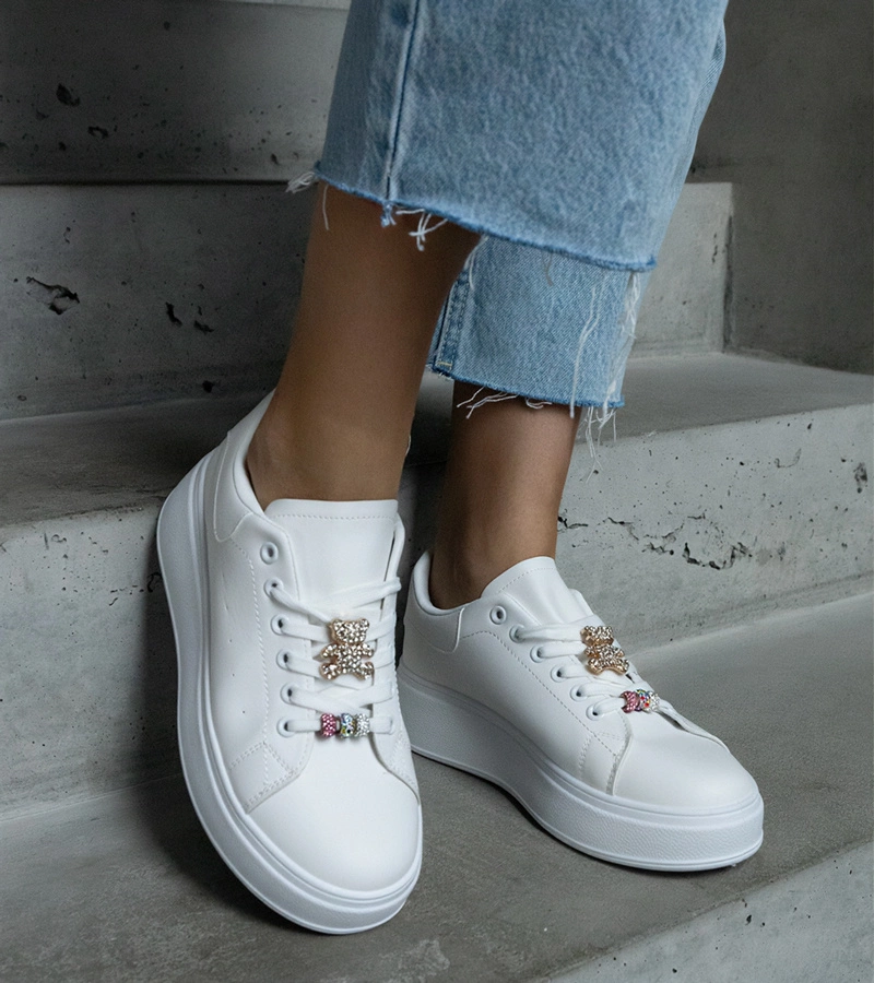 Biele tenisky na platforme zdobené medvedíkom Mavien