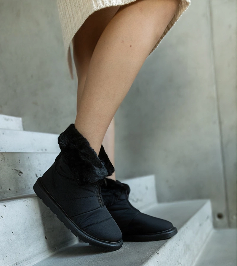 Čierne zateplené kozačky na masívnom podpätku Meragomi