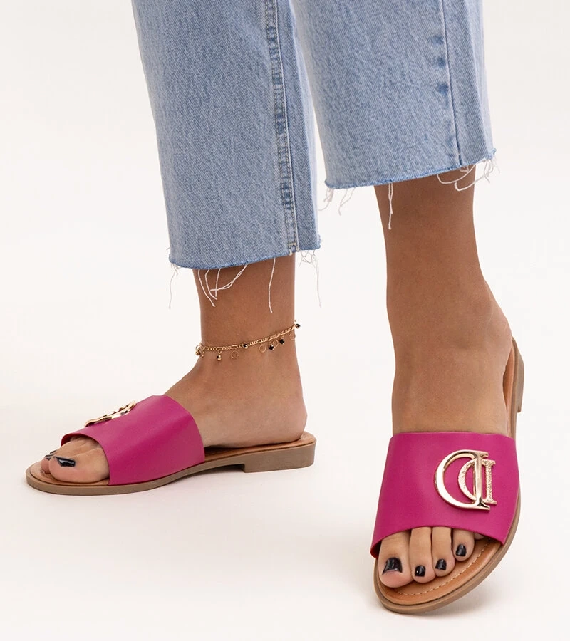 Šľapky na nízkom podpätku s dekoratívnou sponkou Luara