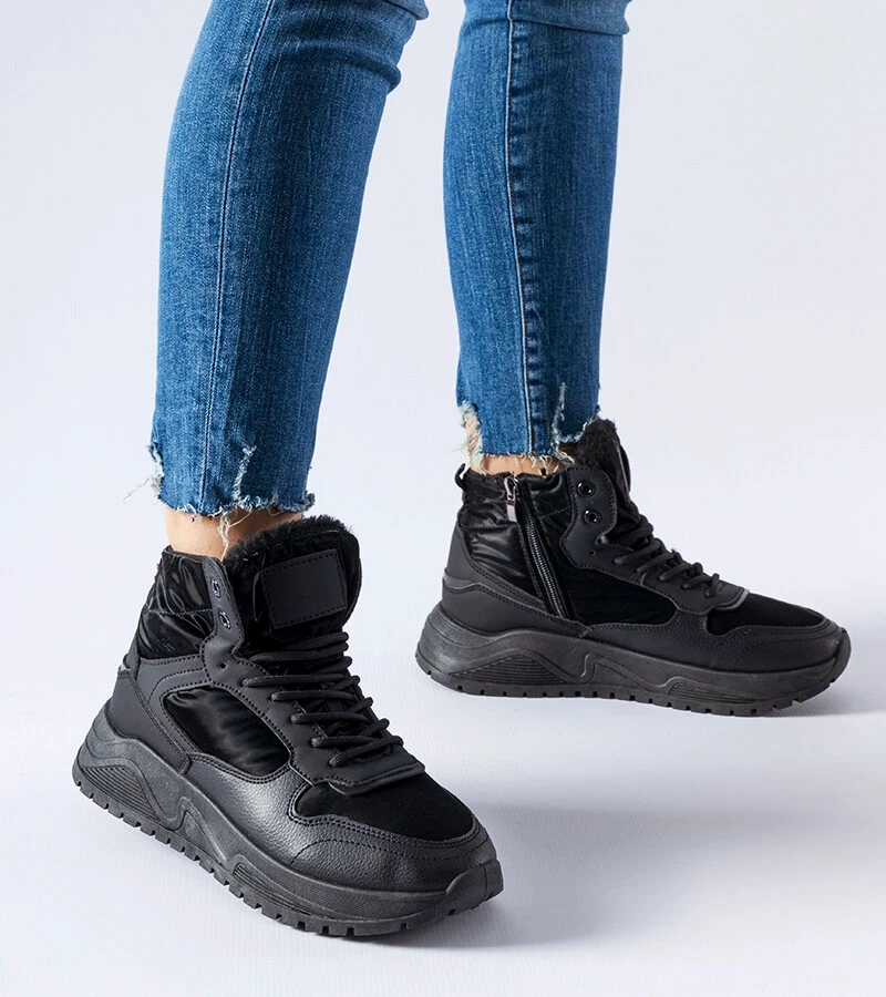 Čierne zateplené členkové čižmy s ozdobným pásikom Lido