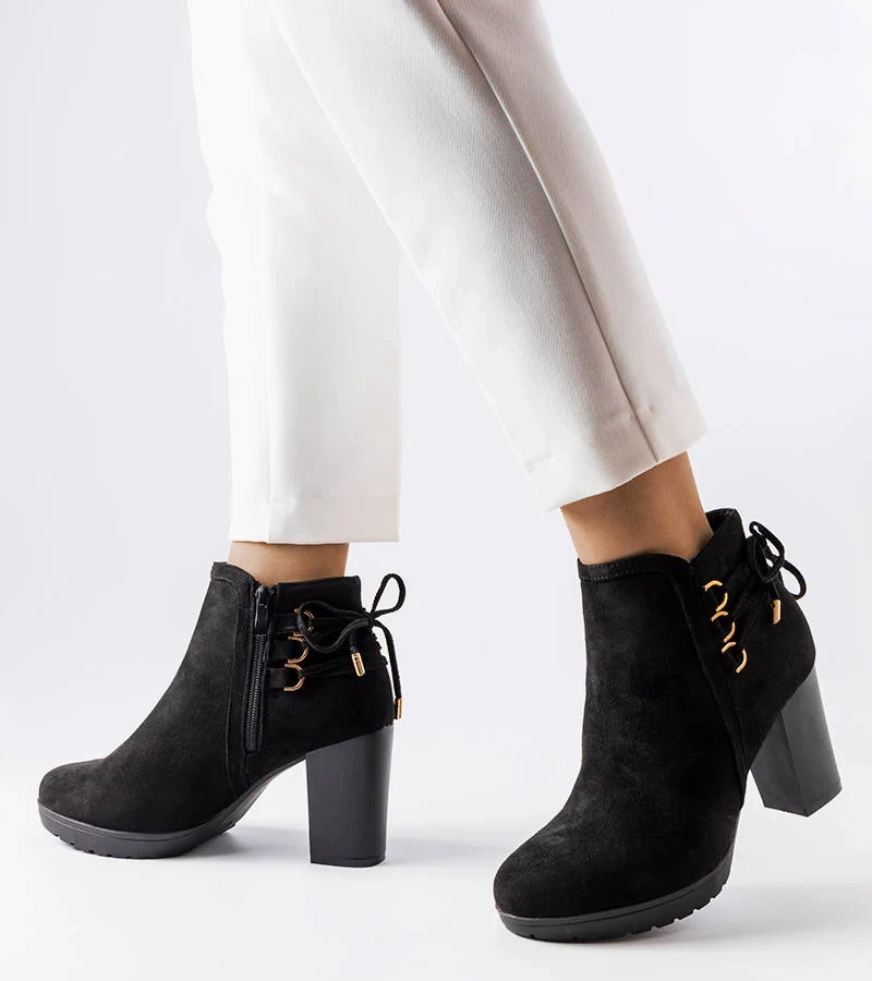 Čierne saténové čižmy s masívnym ihlovým podpätkom Glus