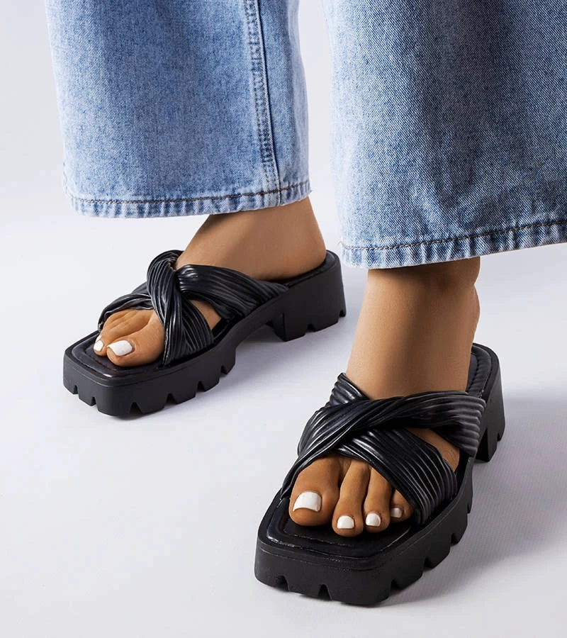 Čierne žabky na traktorovej podrážke Dubé
