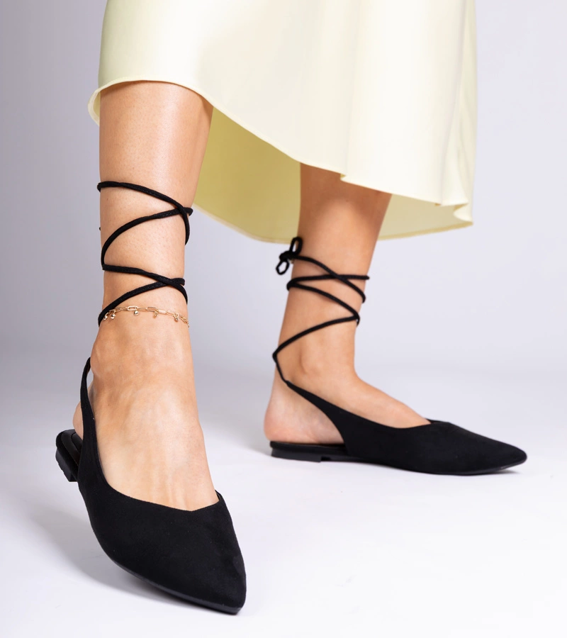 Čierne baleríny na plochom opätku viazané na členku Karlioz