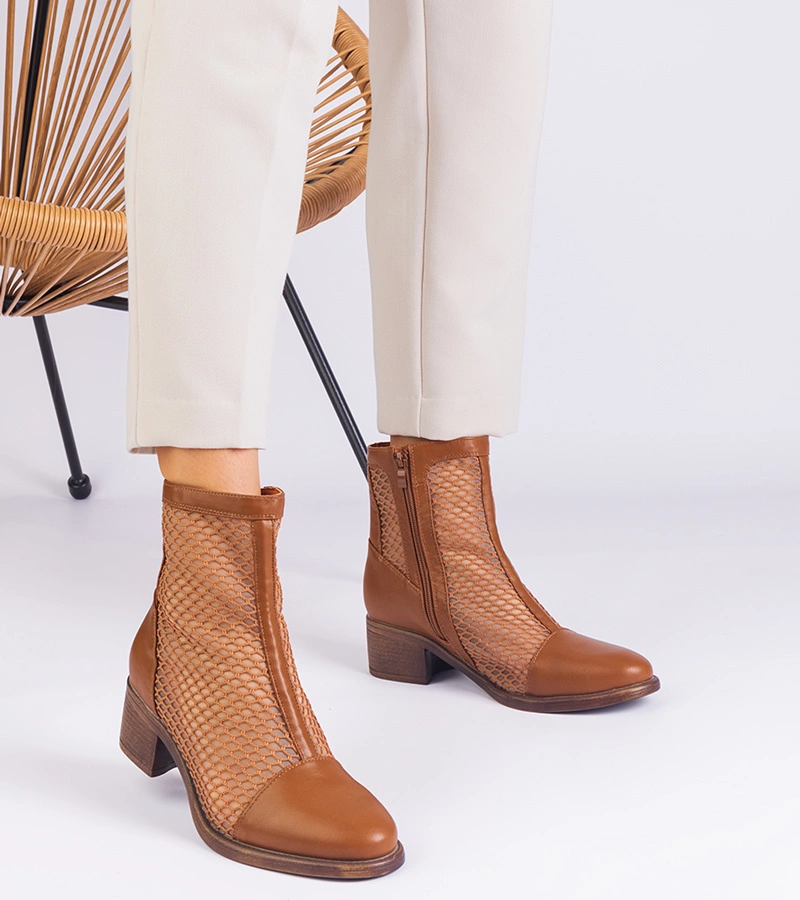 Hnedé sieťované členkové topánky na podpätku Melarka