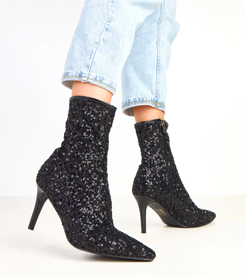 Čierne členkové topánky s flitrovým zakončením na ihličke Venda