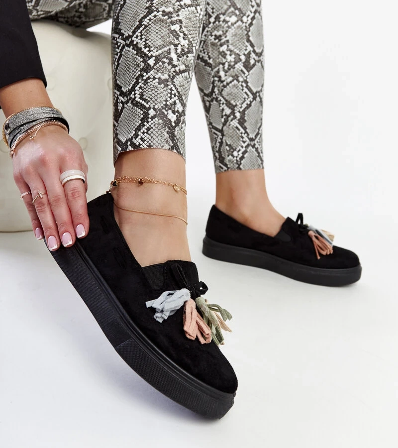 Čierne sametové mokasíny s cirkónmi od Fabrizia