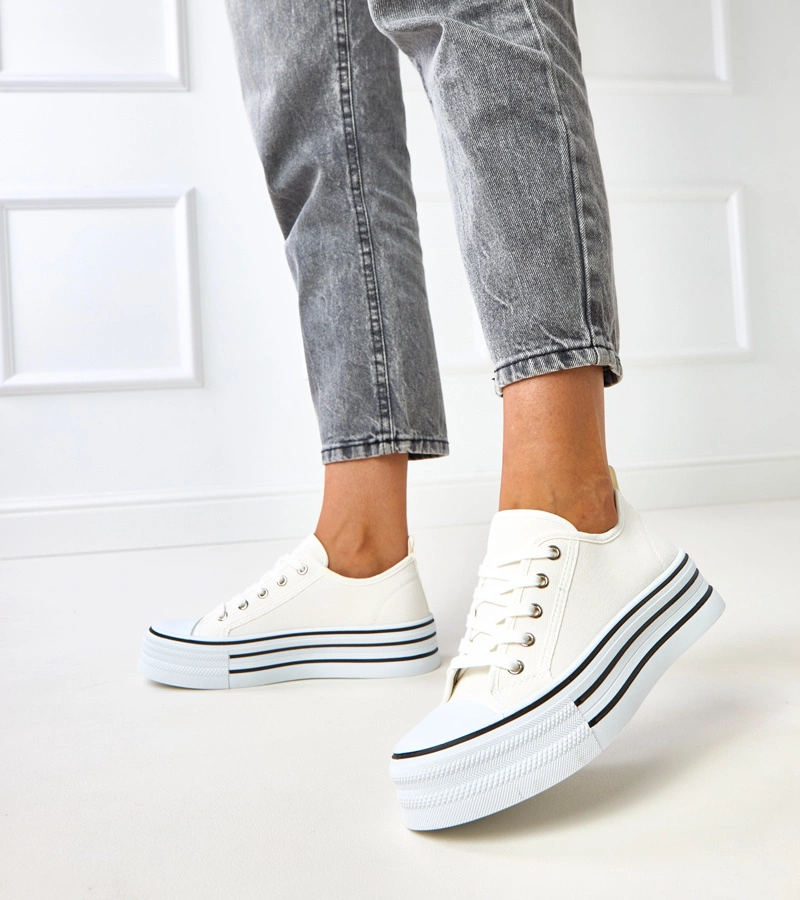 Biele tenisky na platforme zdobené motýlikom Aviara