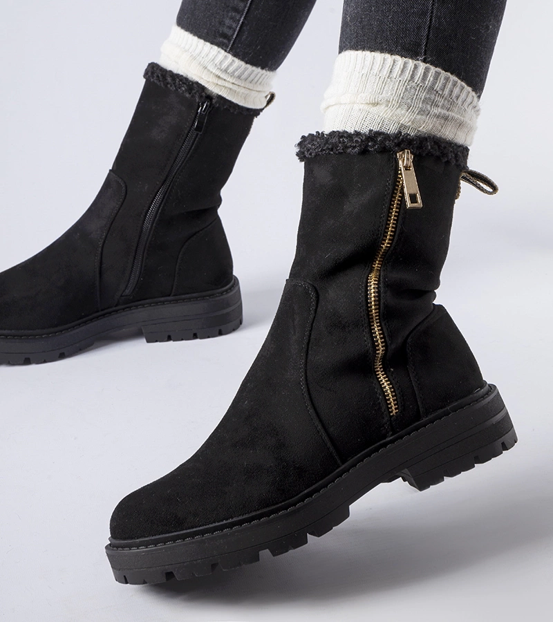 Čierne zimné topánky s ozdobným kožuškom Igne