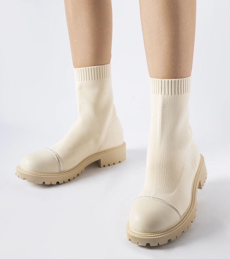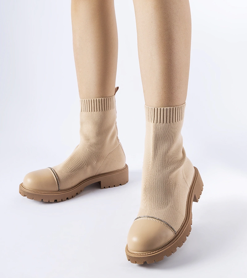 Béžové ponožkové členkové čižmy s cirkónmi Vail
