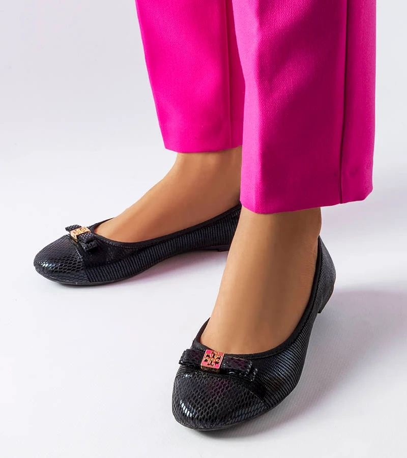 Balerínky v námorníckej modrej farbe zdobené mašľou Jetté