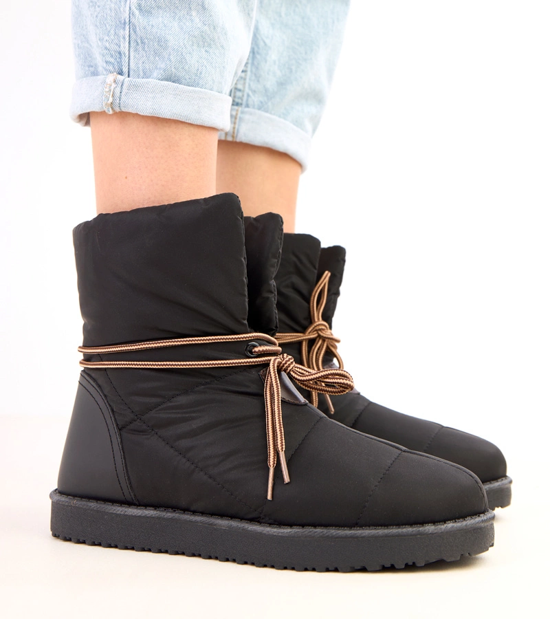 Čierne dámske snehule s ozdobnou šnúrkou Temira