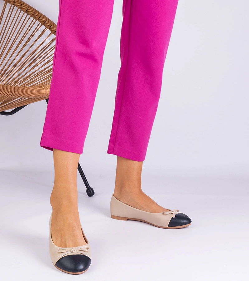 Béžové balerínky s mašličkou a čiernou špičkou Pikolo