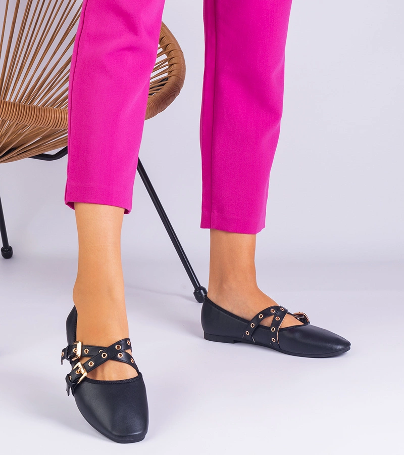 Čierne balerínky z eko kože zdobené prackami Emmarino