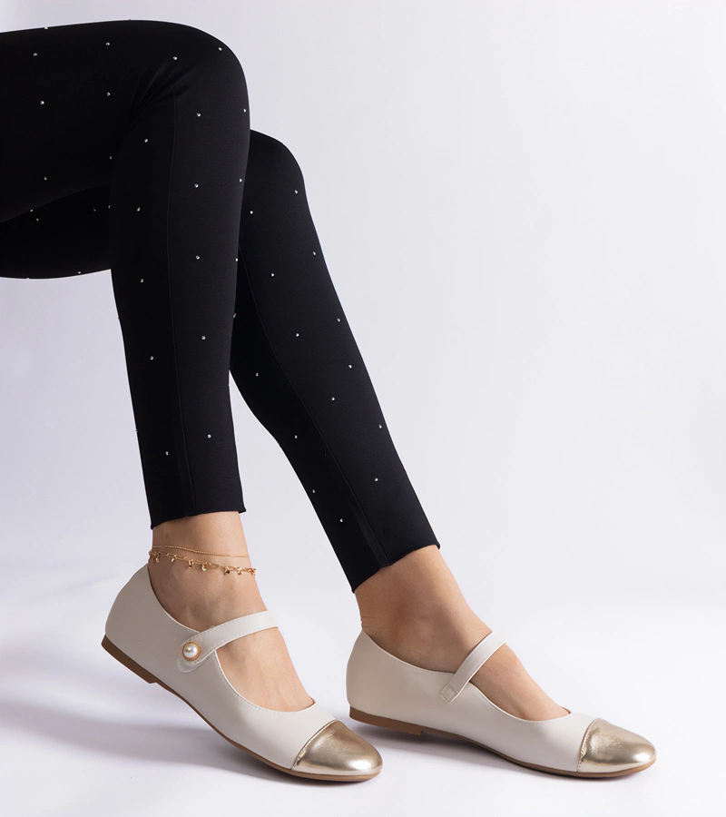 Béžovo-zlaté baleríny s lakovanou špičkou na suchý zips Jaures