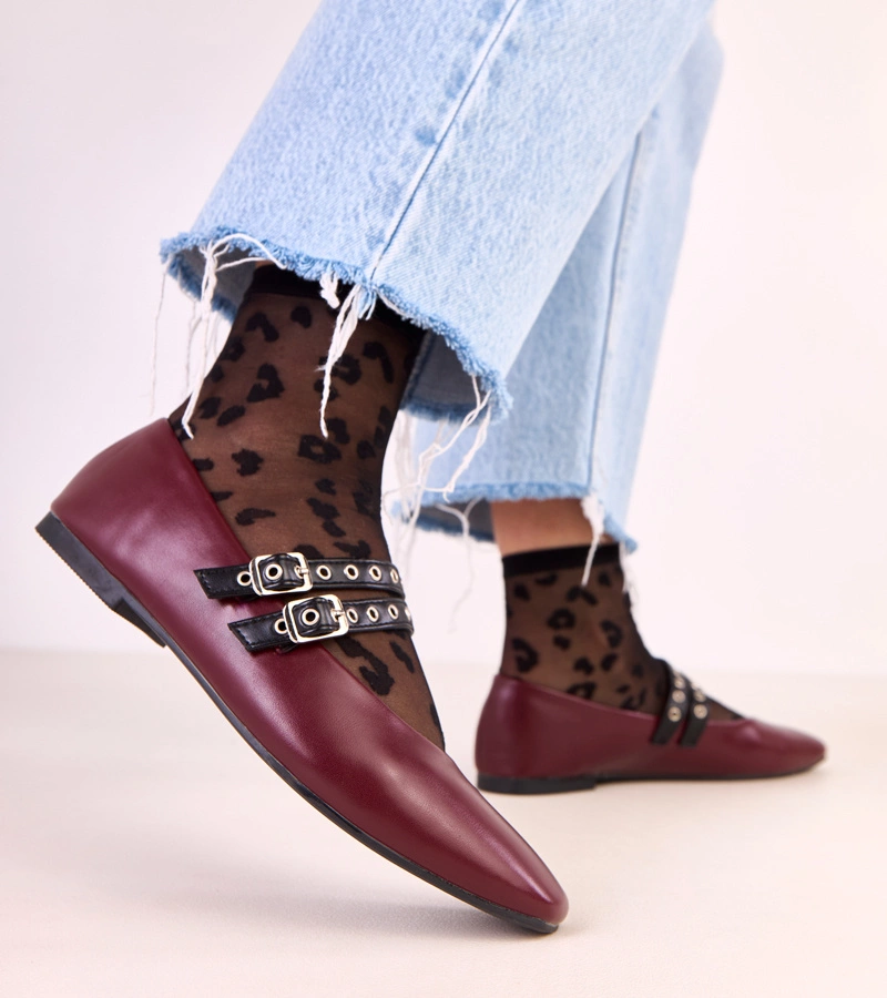 Bordové baleríny so štvorcovou špičkou a prackami Alfira