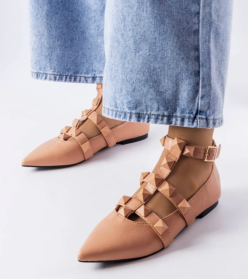 Bordové balerínky zdobené mašličkou a brošňou Esdras