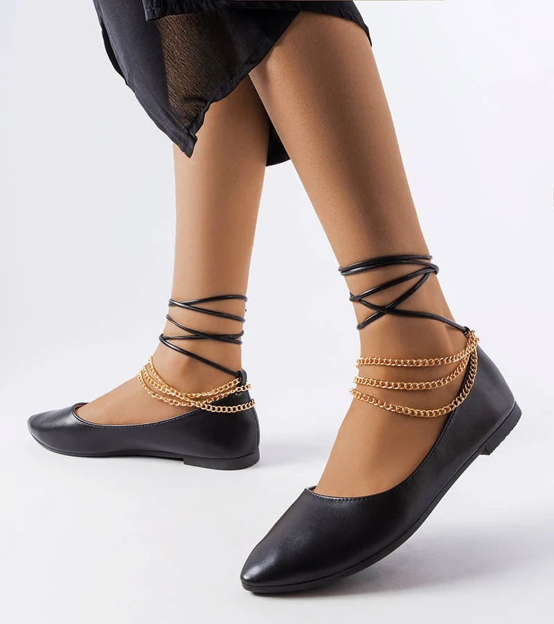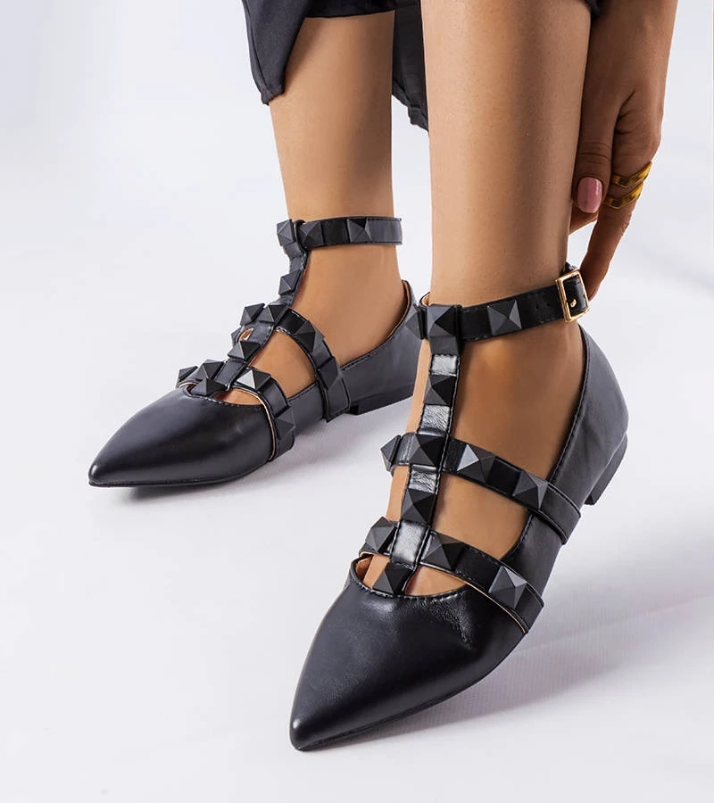 Čierne balerínky s matným povrchom zapínané na pracku Longhola
