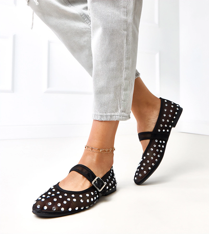 Čierne sieťované balerínky s kryštálikmi Malmo