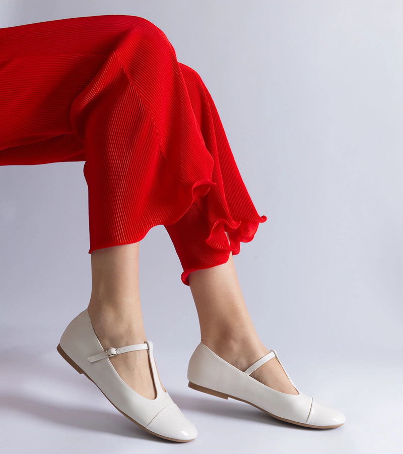 Červené balerínky s lakovanou špičkou na pracku Gloriana