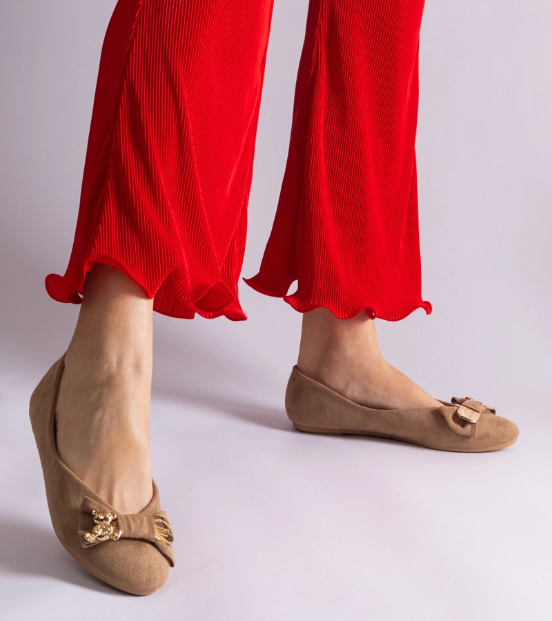 Hnedé balerínky zdobené mašľou a brošňou Esdras