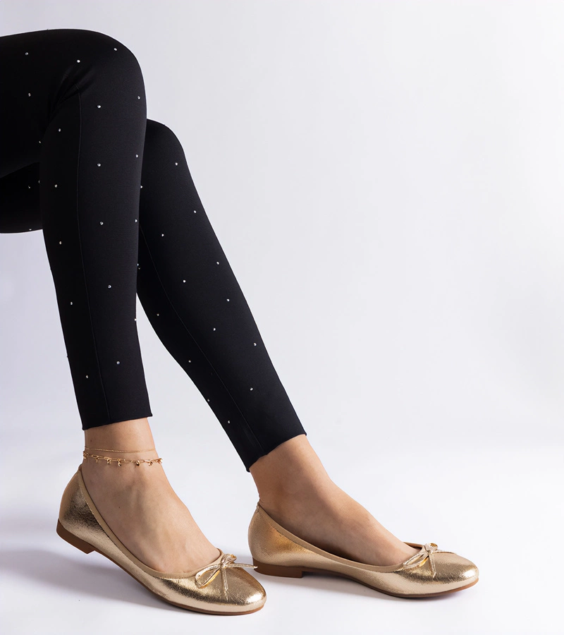 Zlaté balerínky zdobené mašľou Yunka