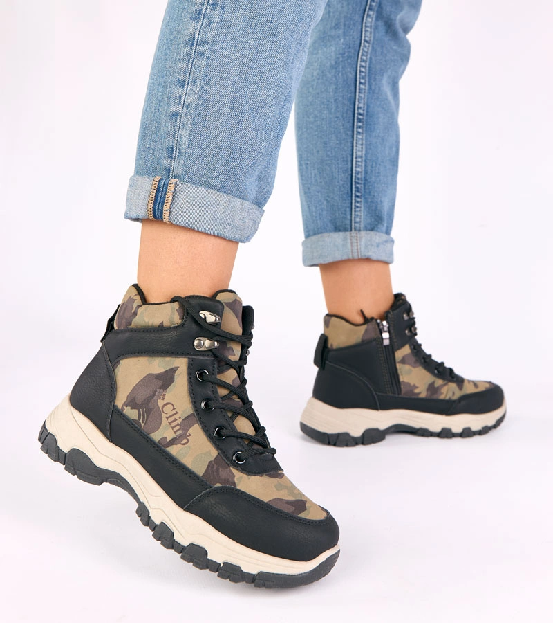 Čierne členkové topánky s vyhrnutým zvrškom na platforme Carla
