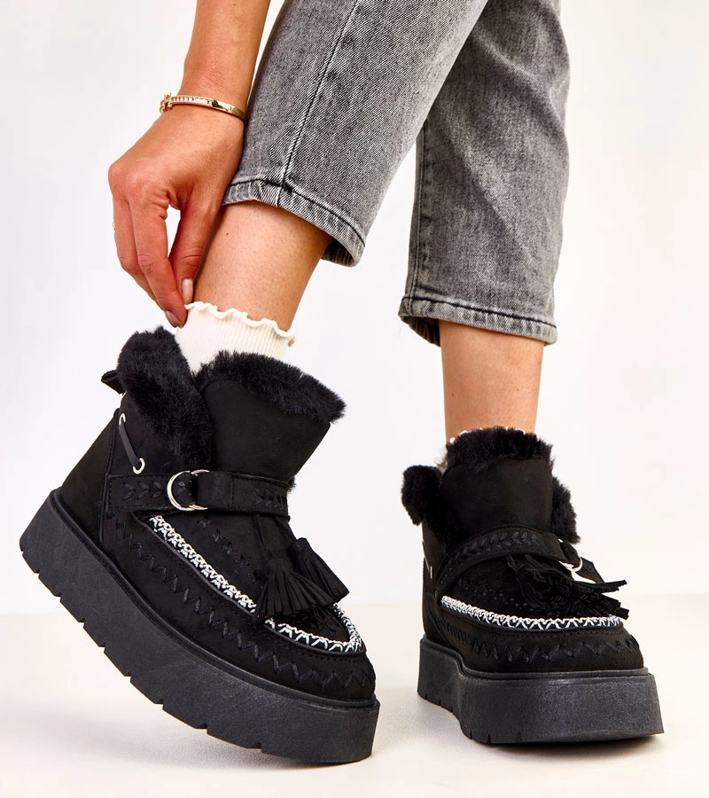 Čierne zateplené členkové topánky na platforme zdobené kameňmi Dajana