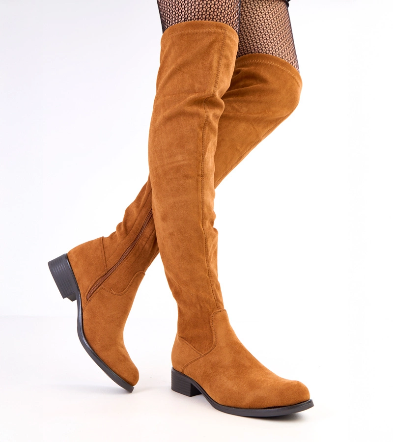 Svetlobéžové čižmy s elastickým zvrškom na plochom opätku Vrissa