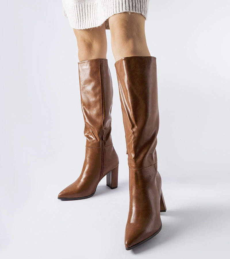 Hnedé čižmy s krytým podpätkom od značky Lecore