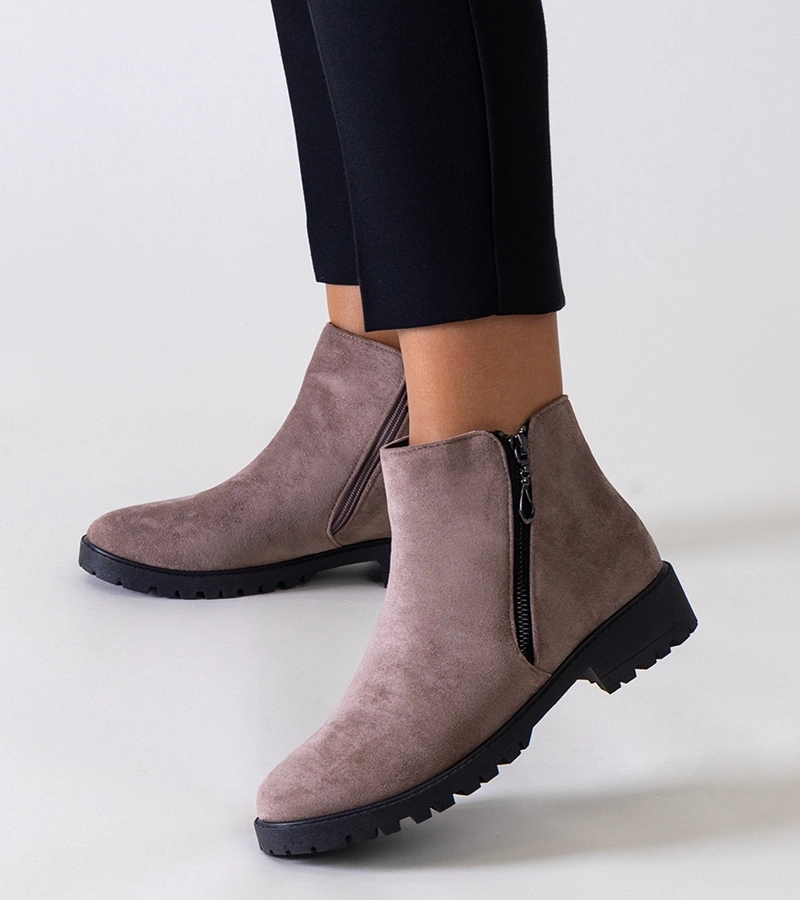 Ciemnobeżové botky na podpätku z eko kože Asera.