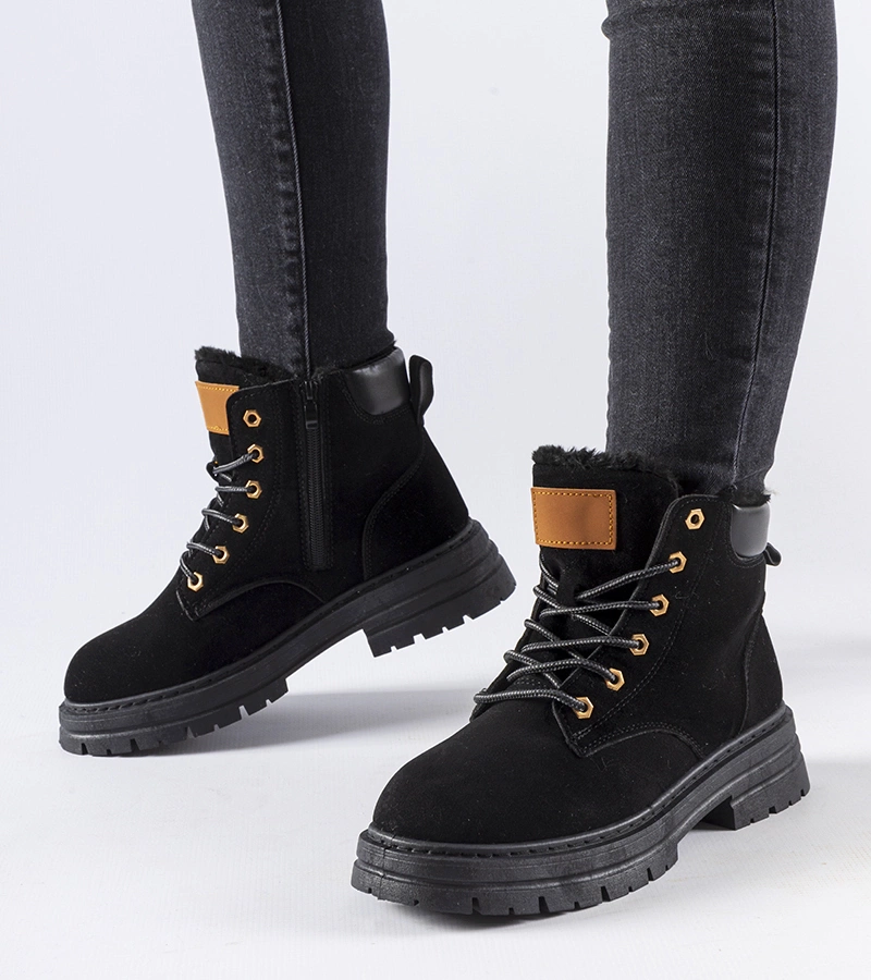 Čierne zateplené členkové čižmy s ozdobným pásikom Lido
